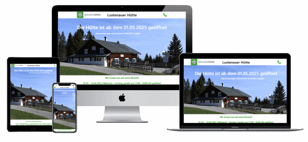 Eine digitale "Visitenkarte", die ihren Zweck zu 100% erfüllt. Der Hüttenwirt wird entlastet, weil weniger Leute anrufen, und Gäste haben sofort Klarheit. Die perfekte Überbrückung, bis die umfangreiche Webseite fertiggestellt ist.