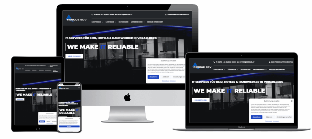 Als IT-Dienstleister ist die eigene Website die Visitenkarte für technische Kompetenz. Die bestehende Seite war jedoch nicht Barrierefrei, hatte Ladeprobleme: Ladezeiten waren zu langsam und Barrierefreiheit war noch kein Thema. Das Ziel war, eine Plattform zu schaffen, die genauso zuverlässig und professionell wirkt wie der Service von Rescue EDV selbst.