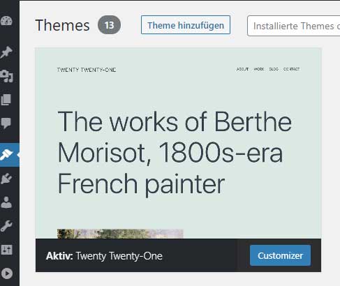 Natürlich gibt es auch ein neues Theme „Twenty Twenty-One“