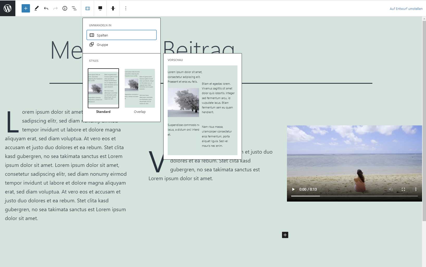 Das besondere mit dem neuen Theme ist, dass es einige Block Vorlagen mitbringt, die mit WordPress 5.5 eingeführt wurden.